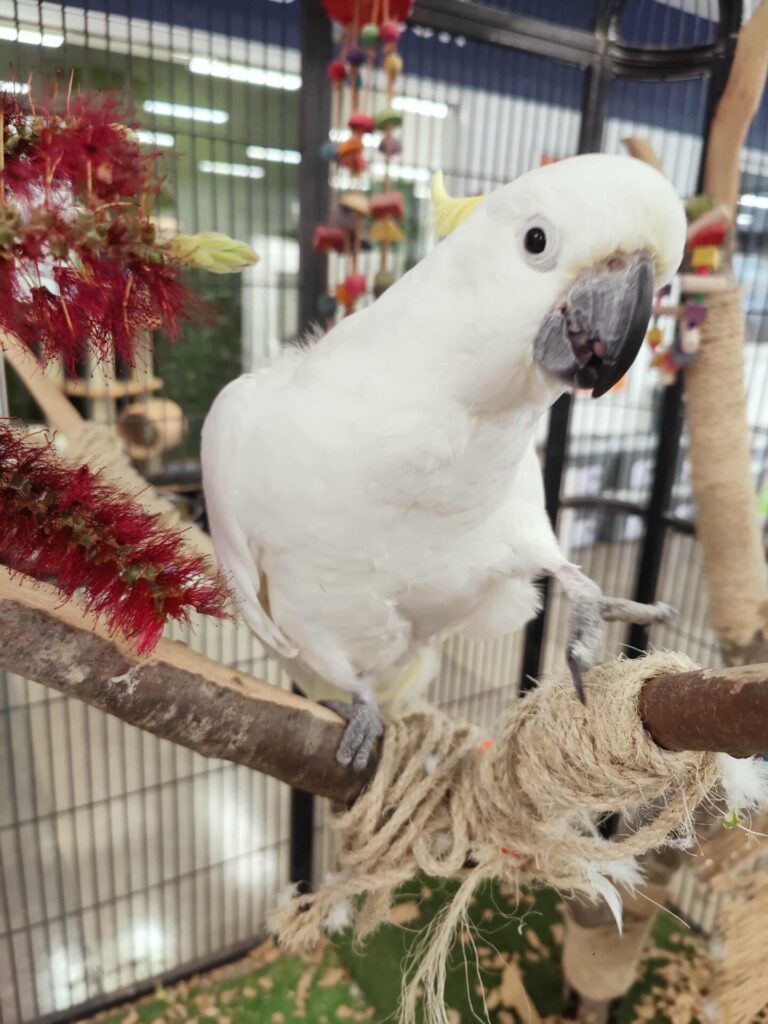 Sammy is a 16-year-old female Sulphur-Crested Cockatoo with a big personality and plenty of character. She’s been in care for some time and is now looking for a stable, long-term home with someone who understands the unique needs of cockatoos.