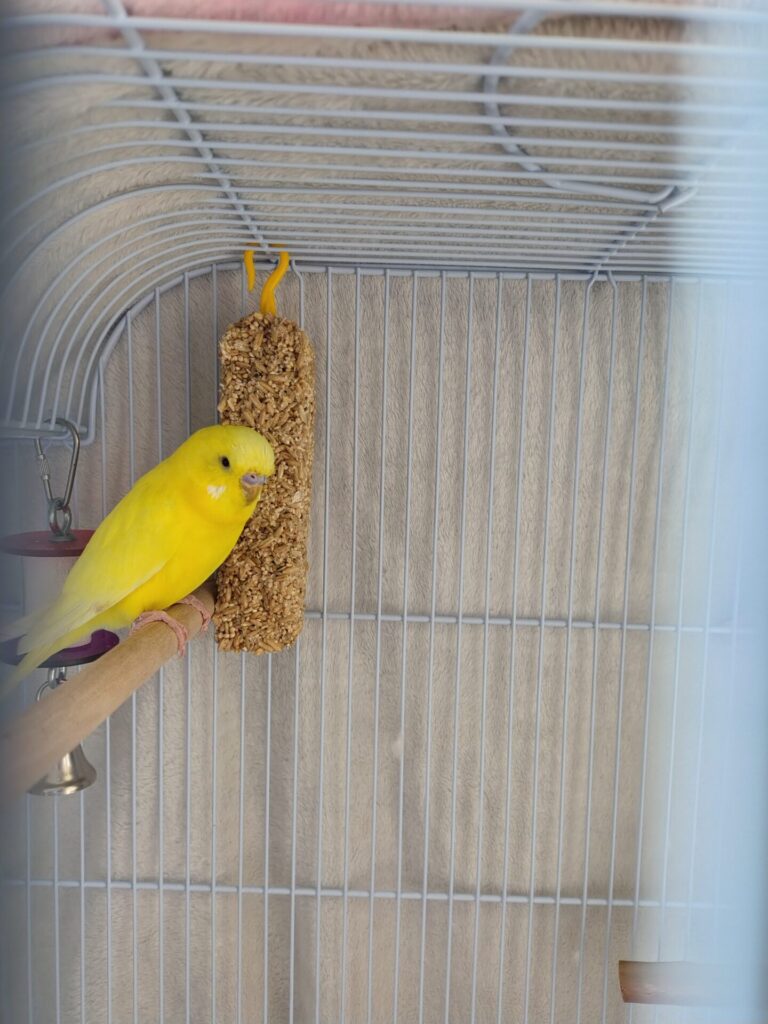 Sunny enjoys a good seed mix, his favourite treat bars, and millet spray. He’s active, vocal, and full of character, and while he’s still learning to trust people, he thrives when given space and understanding.