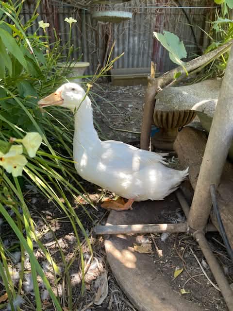 About: Meet Alfie – a lovely male Pekin duck, estimated to be around 6–7 years old, with a calm nature and a friendly disposition. He’s been part of a family environment for many years and has been well cared for, handled regularly, and is comfortable around people.