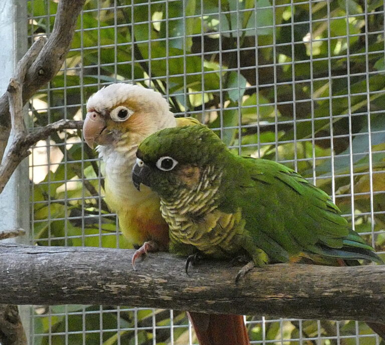 These two are deeply bonded and must stay together. They would be best suited to an experienced home that understands conures, their intensity, and their need for interaction, enrichment, and structure. An aviary with an indoor and outdoor mix would suit them beautifully, and they may also do well in an aviary setting with other compatible birds.