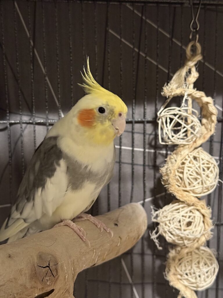 About: Meet Lera – a beautiful cinnamon cockatiel under 12 months of age, with a gentle, affectionate nature and a strong bond to her people. Still very much a baby, she is curious, loving, and learning about the world one step (and wingbeat) at a time.