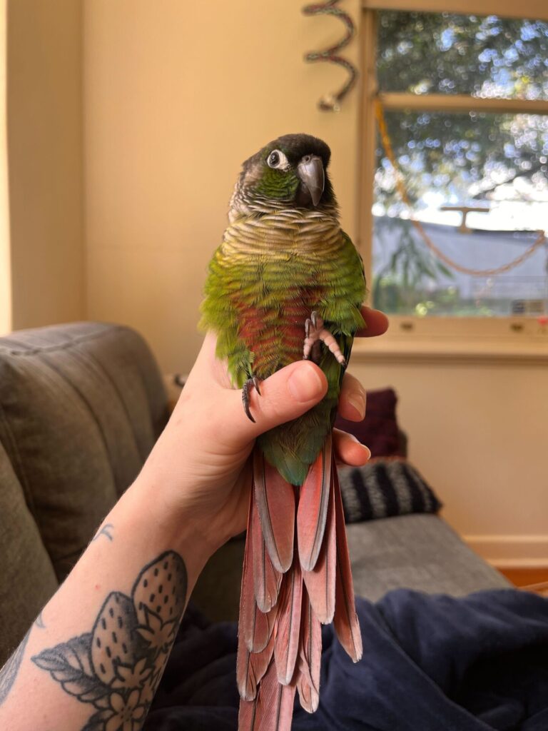 Pollo would suit an experienced owner who understands conure behaviour and can provide enrichment, companionship, and consistency. In the right home, he’s a deeply rewarding, affectionate, and endlessly entertaining companion.